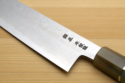Discover the excellence of the Yoshihiro Inox Sujihiki, expertly forged from a single piece of AUS-10 stainless steel with a semi-stainless steel finish. This double-edged Sujihiki slicer features a premium octagonal-shaped stabilized maple burl handle and is NSF-certified for commercial kitchens. With a carbon content of over 1%, it offers superior edge retention, toughness, and ease of sharpening, setting it apart from competitors.