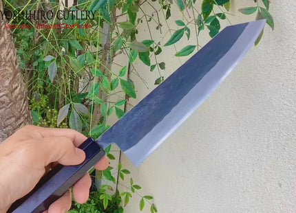The combination of the Kurouchi Stainless Cladding and the Blue Steel core provides a perfect balance between durability and sharpness. The stainless steel helps protect the blade from moisture and reduces the risk of rust, while the exposed Blue Steel edge offers superior sharpness and precision that professionals demand. It's a knife that blends the best of traditional craftsmanship with modern technology.