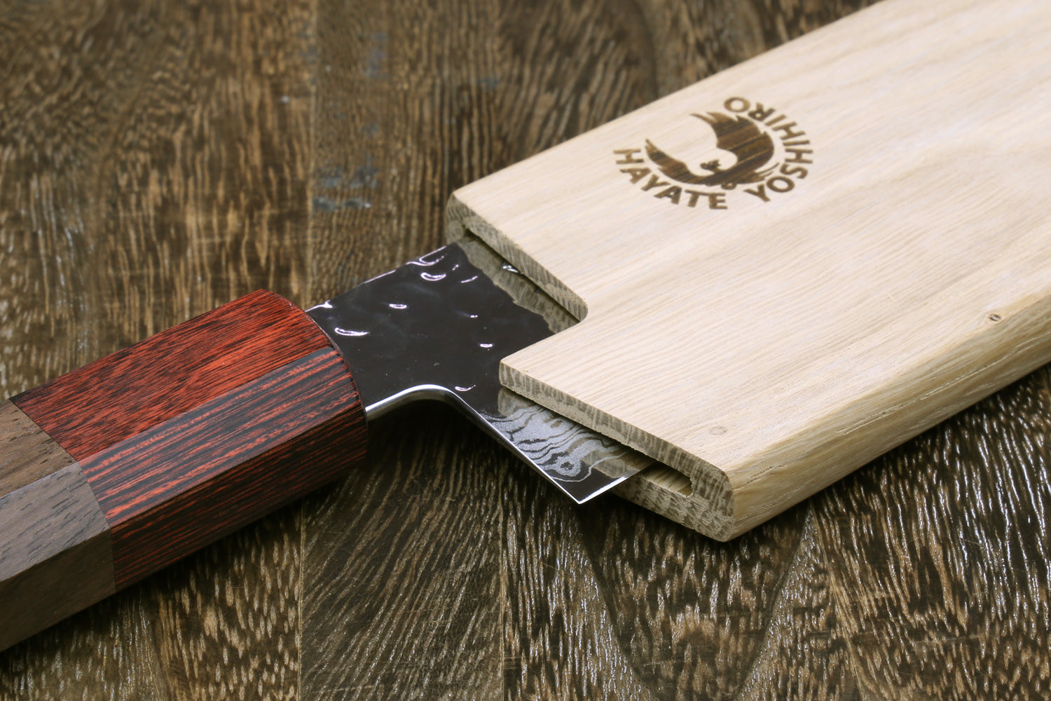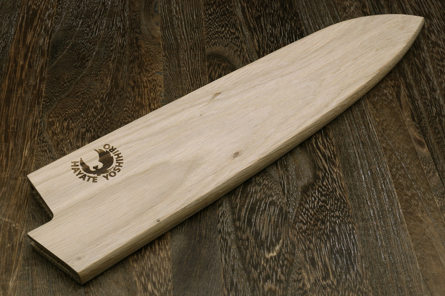 Now upgraded to premium American Oak wood, this saya cover is a refined evolution of our previous magnolia design for both traditional and Western-style knives. Oak is significantly harder and more durable than magnolia, offering improved resistance to dents, scratches, and staining while providing a richer, more refined appearance. The dense hardwood construction enhances overall quality and longevity while remaining suitable for protecting carbon steel blades.