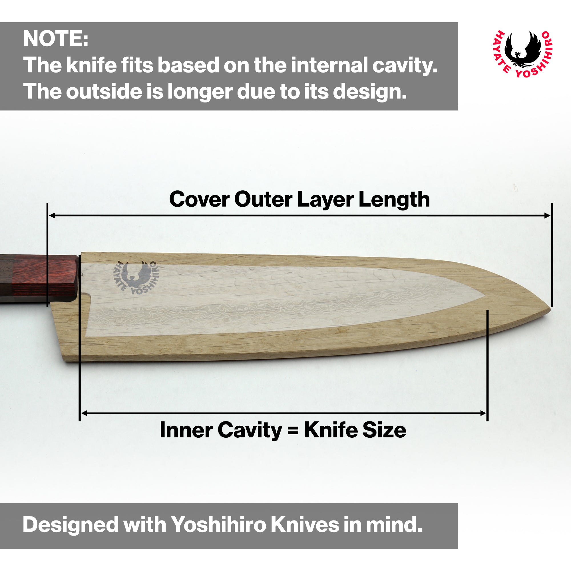 This saya cover is specifically made for Yoshihiro Knives and may not be compatible with knives from other brands. Additionally, Should you have any questions regarding compatibility, please reach out through our Contact page or call us at (310) 777-0227. Experience a more convenient, durable, and premium knife protection solution with our Oak magnetic saya, proudly made in Japan.