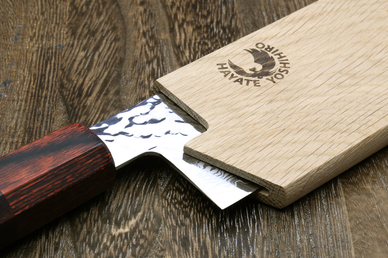 Now upgraded to premium American Oak wood, this saya cover is a refined evolution of our previous magnolia design for both traditional and Western-style knives. Oak is significantly harder and more durable than magnolia, offering improved resistance to dents, scratches, and staining while providing a richer, more refined appearance. The dense hardwood construction enhances overall quality and longevity while remaining suitable for protecting carbon steel blades.