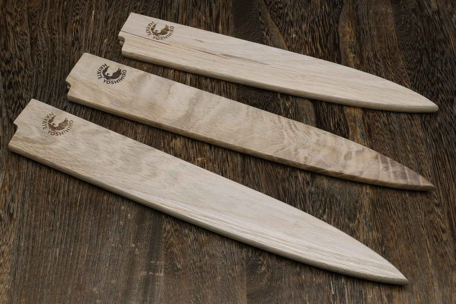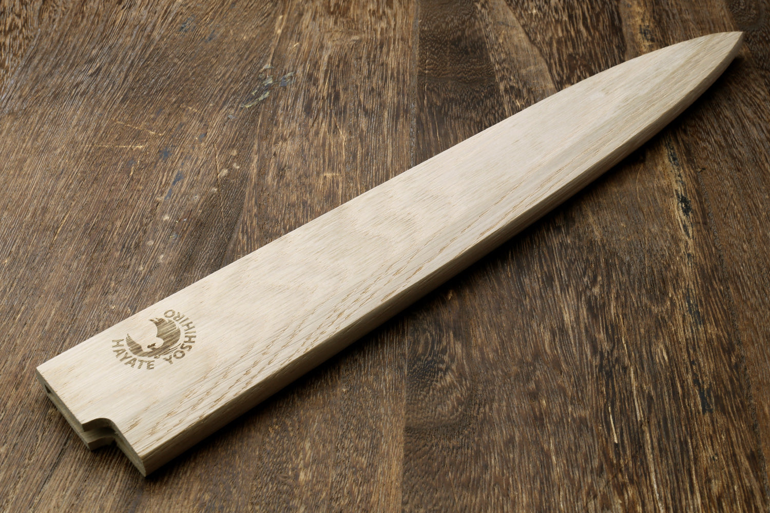 Now upgraded to premium American Oak wood, this saya cover is a refined evolution of our previous magnolia design for both traditional and Western-style knives. Oak is significantly harder and more durable than magnolia, offering improved resistance to dents, scratches, and staining while providing a richer, more refined appearance. The dense hardwood construction enhances overall quality and longevity while remaining suitable for protecting carbon steel blades.