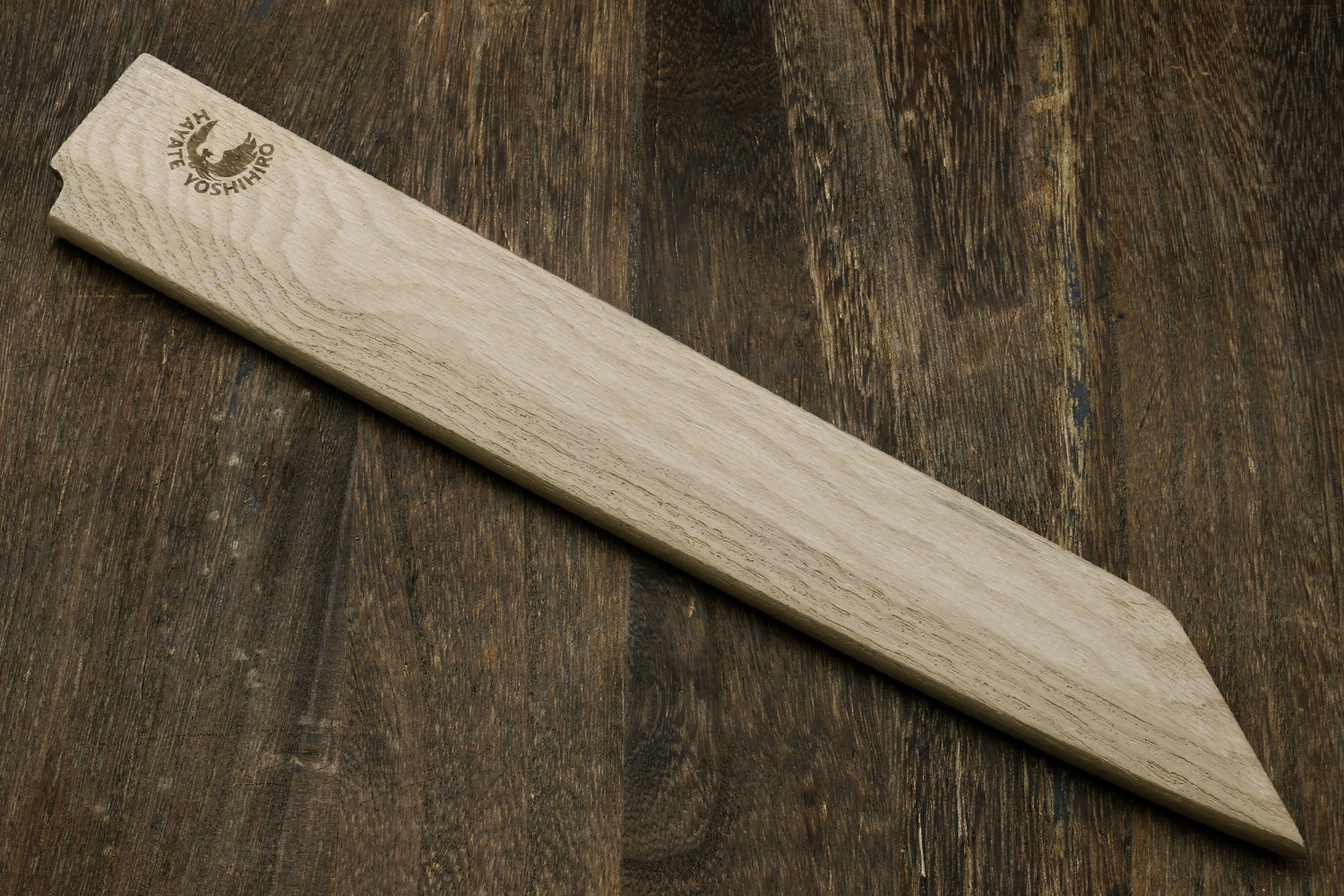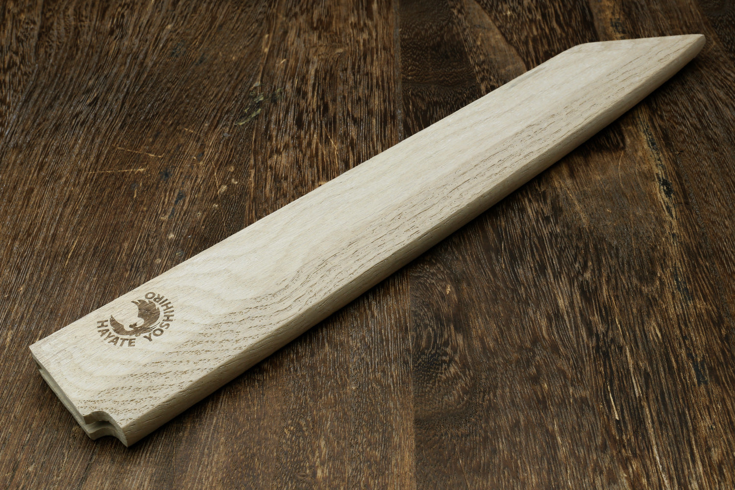 Now upgraded to premium American Oak wood, this saya cover is a refined evolution of our previous magnolia design for both traditional and Western-style knives. Oak is significantly harder and more durable than magnolia, offering improved resistance to dents, scratches, and staining while providing a richer, more refined appearance. The dense hardwood construction enhances overall quality and longevity while remaining suitable for protecting carbon steel blades.