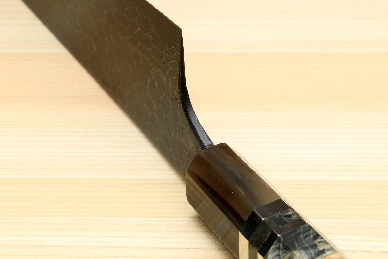 Important: This knife is made with stainless cladding over a high-carbon core. The cladding resists rust, but the exposed core at the edge can still discolor or rust if not kept dry and properly maintained — Learn more about high-carbon steel here.