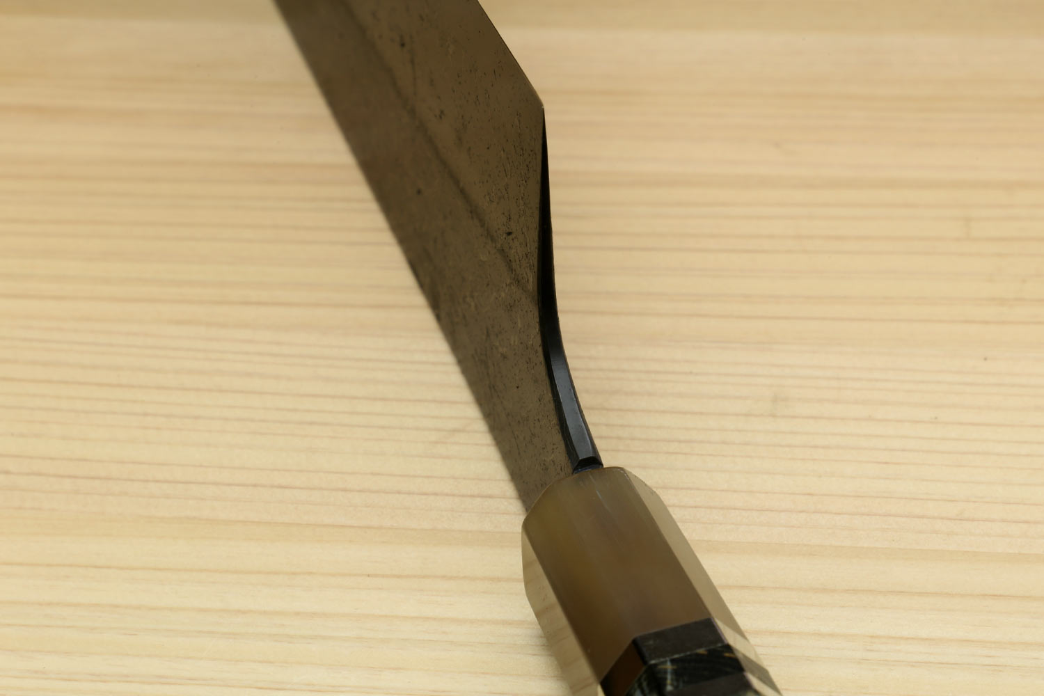 Important: This knife is made with stainless cladding over a high-carbon core. The cladding resists rust, but the exposed core at the edge can still discolor or rust if not kept dry and properly maintained — Learn more about high-carbon steel here.