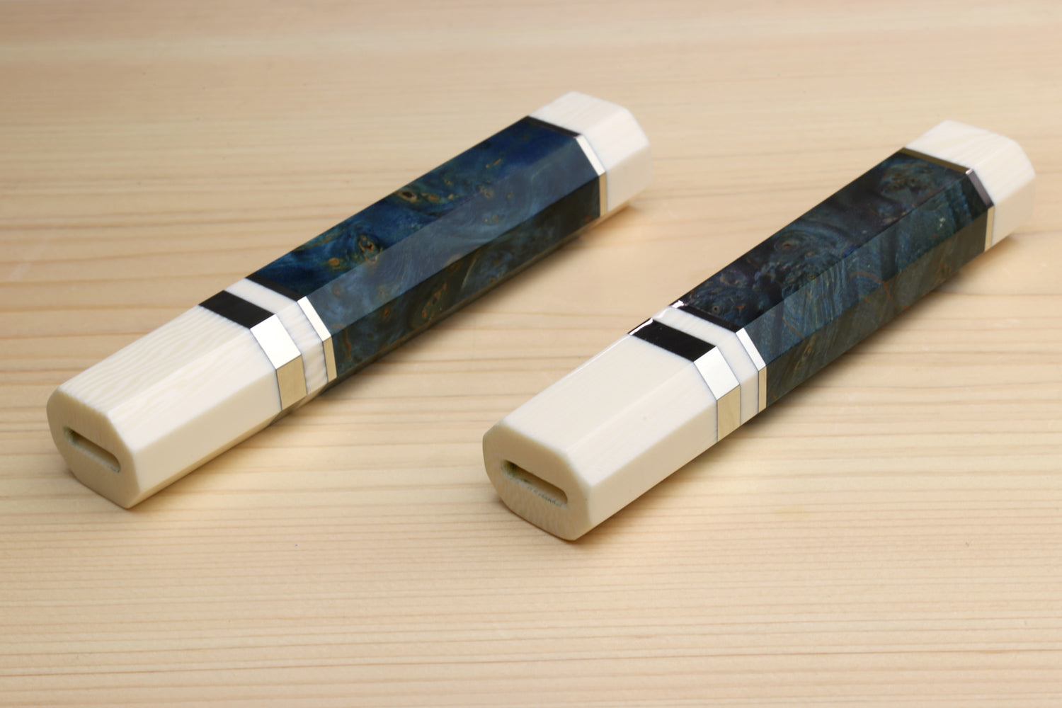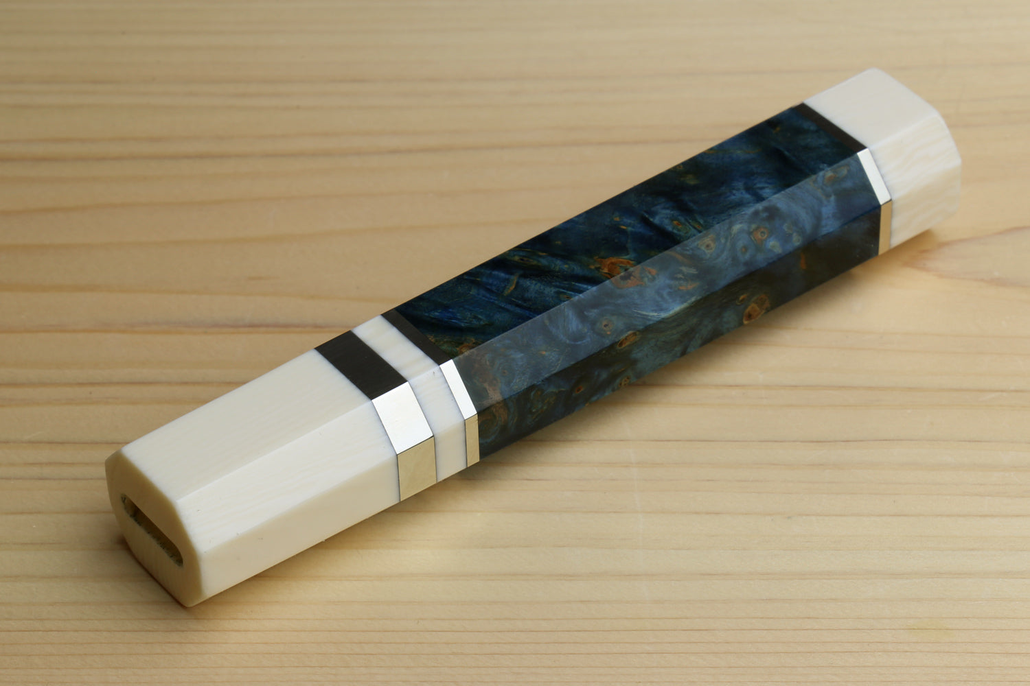 Elevate your knife collection with our traditional Japanese-style handcrafted Octagonal Ocean Blue Handle designed specifically for Gyuto knives. This handle is perfect for those who appreciate exceptional craftsmanship and performance, offering an ergonomic fit that molds effortlessly to your hand, ensuring superior comfort and control during every cut.