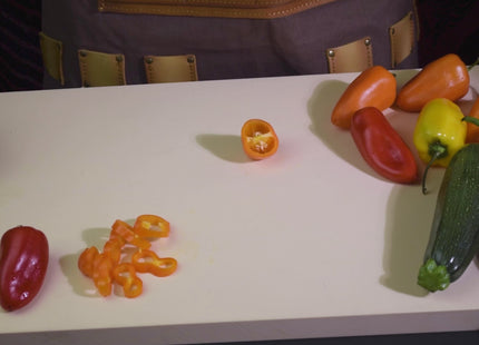 The Gyuto, a versatile Japanese chef's knife, is perfect for tasks like slicing, dicing, and chopping. Its curved blade allows for smooth rocking motions, while the extended tip ensures precise cuts. The hammered texture reduces food sticking, and the full-tang mahogany handle provides a comfortable, secure grip. NSF certified, this knife is a testament to Yoshihiro's craftsmanship.