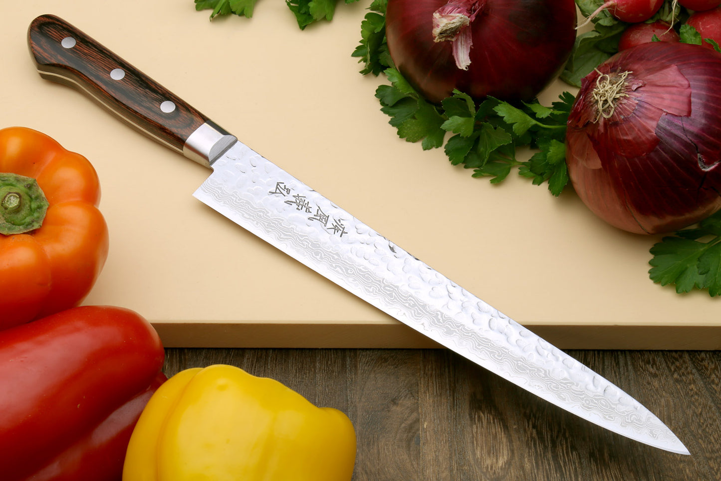 Forged and hammered with 16 layers of steel in the Damascus tradition with a VG-10 Core, the VG-10 Hammered Damascus Series has become a perennial bestseller, offering a perfect balance of performance, beauty, and extraordinary value. This collection combines the craftsmanship of Japanese knife-making with modern functionality, making it the ideal choice for both professional chefs and cooking enthusiasts.